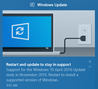 If you are using Windows 10 1803 you are getting a message now that is telling you that you need to update your system.